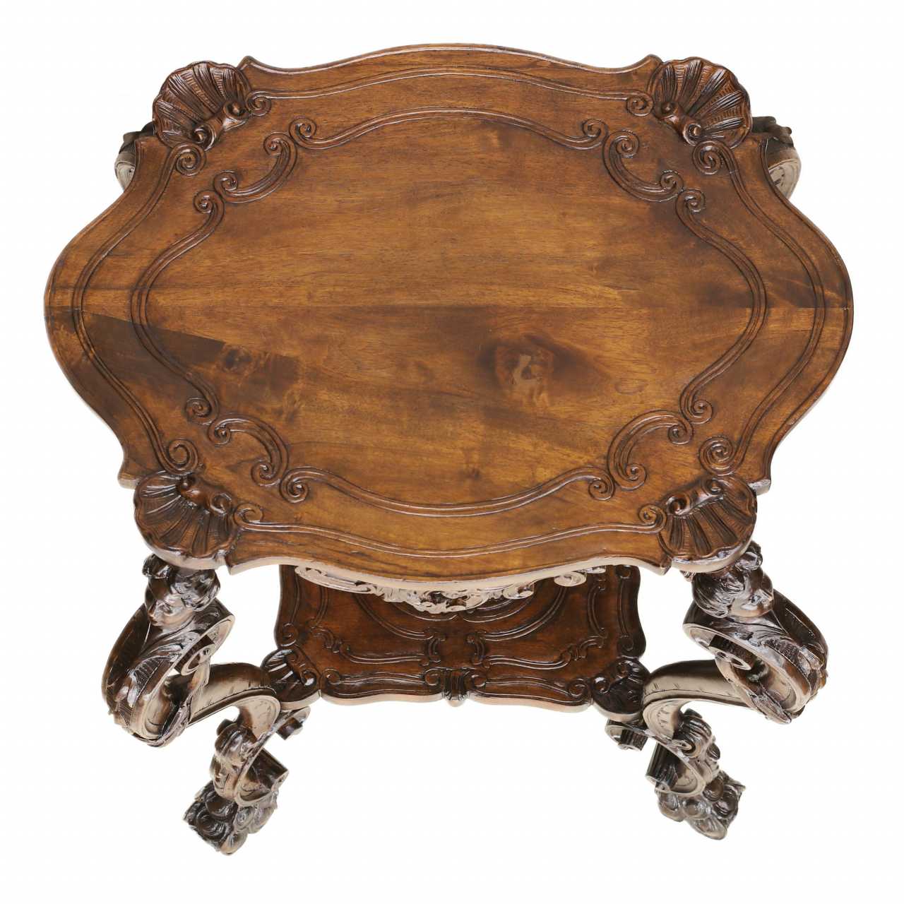 Carved wooden table in neo-Rococo style from the turn of the 19th century. Wood Neorococo At the turn of 19th -20th century