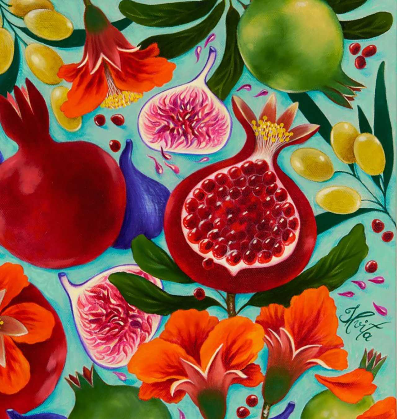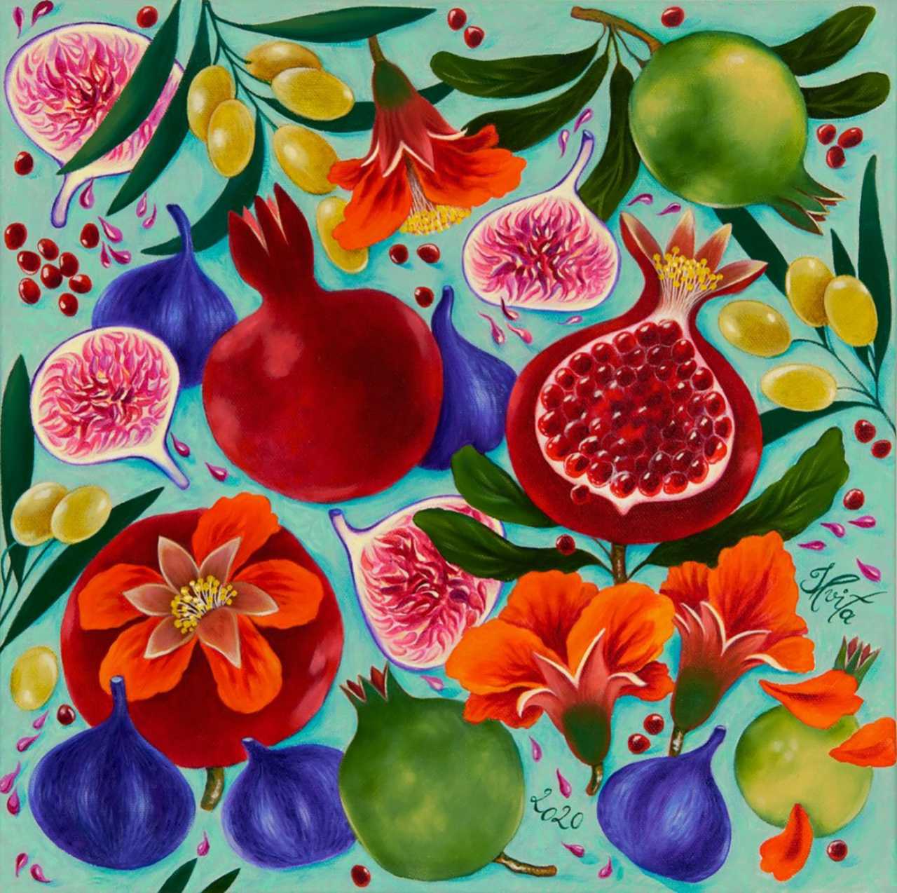 Author: Ilvita Didrihsone, Mediterranean treasures, oil on canvas, size: 40 x 40 cm, year of 2020