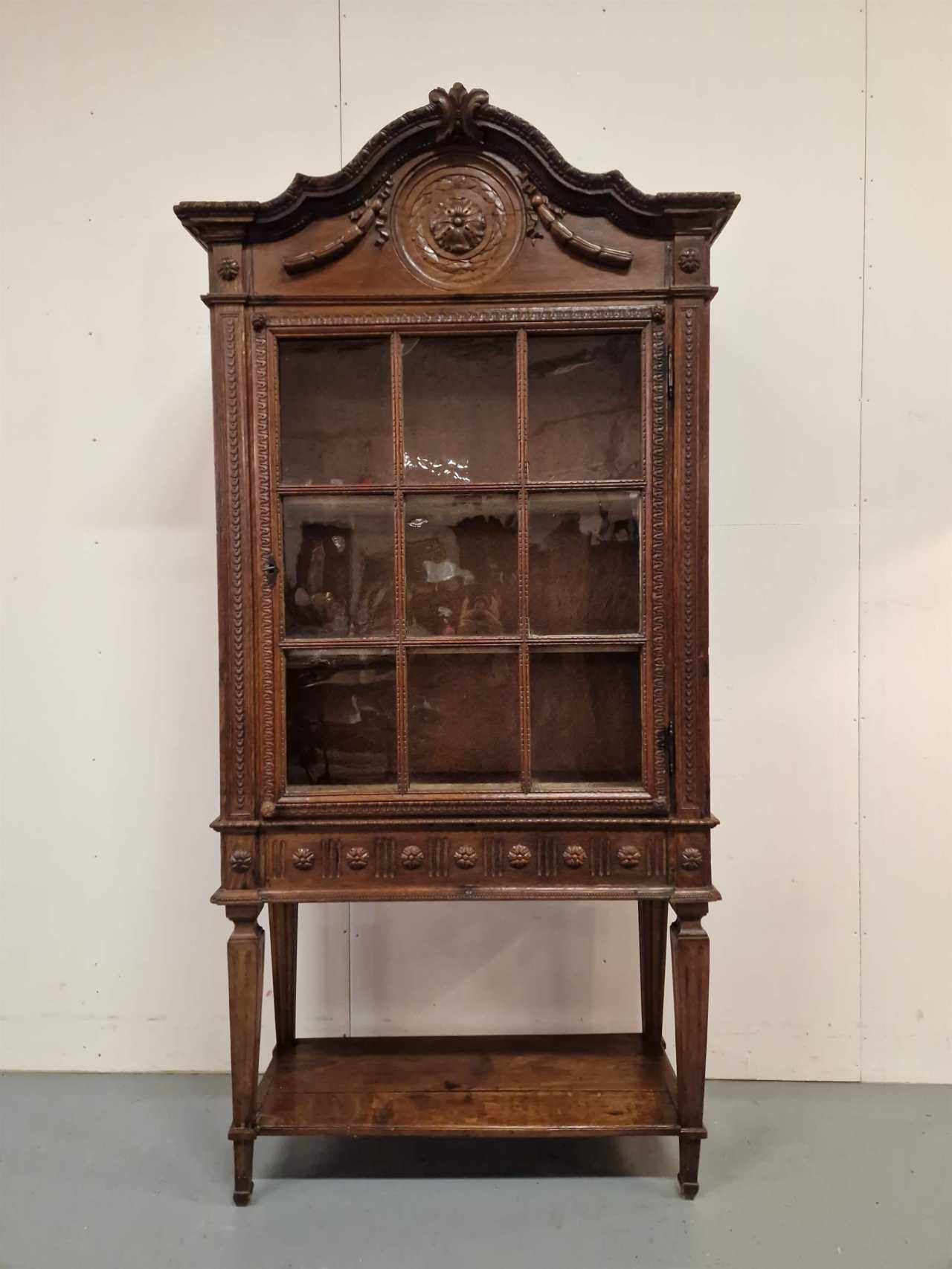 Antique 19th century display caseOak.France.Not dismountable.Dimensions: height 203cm; width 100cm; depth 40cm
