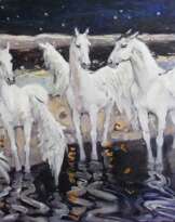 "Натюрморт с арбузом и красным вином" Canvas Oil paint Impressionism Still life Russia 2017