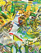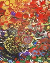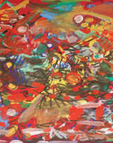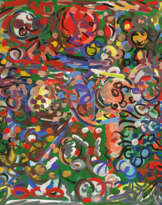 Работа исполнена в стиле Абстрактного экспрессионизма, на бумаге, гуашью.