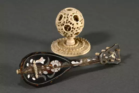 Lot 1388 | 2 Various items: Ivory counterfeit ball on base (h…