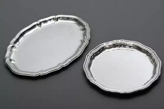 2 Various items with Chippendale rim, 835 silver, 301g: coaster (Ø 7.3 cm) and oval tray (length 24.5 cm)