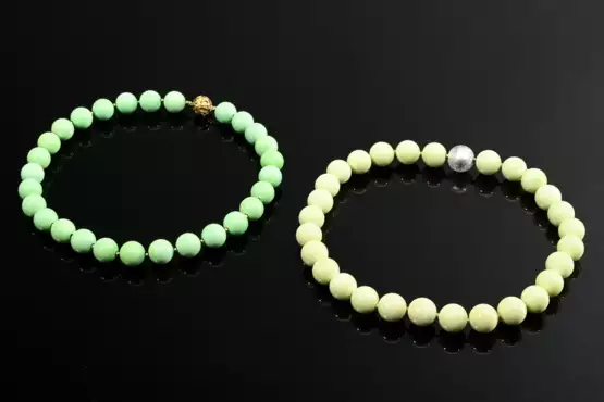 Lot 309 | 2 Various Wilm bead necklaces: Lemon chrysoprase w…