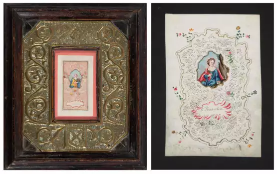 Lot 2414 | 2 Spitzenbilder "Hl. Dorothea"/"Hl. Rosalia"