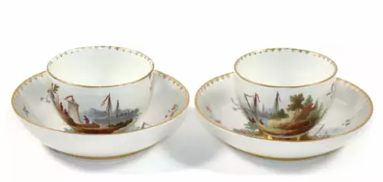 Lot 2730 | 2 Tassen und Untertassen mit Inselmalerei.