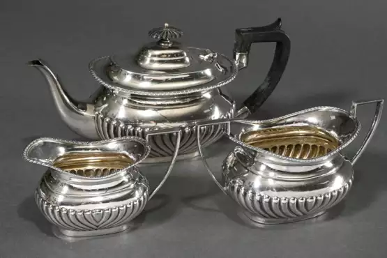 Lot 685 | 3 Pieces English tea set with gadrooned decoration…