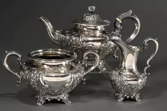 Lot 679 | 3 Piece Victorian tea set with embossed and finely…