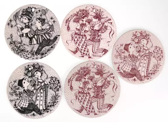 Lot 484 | 5 Monats-Wandplatten, Björn Wiinblad, Nymölle Dänemark, Keramik, dabei 2x Februar (1x rücks, best.), 2x Juni und August, Dm. je 15 cm