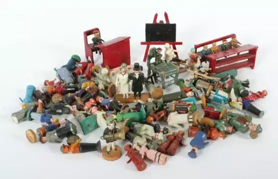 Lot 208 | 72 Miniaturen Erzgebirge, 1. H. 20. Jh., Holz bemalt, zahlreiche Figur…