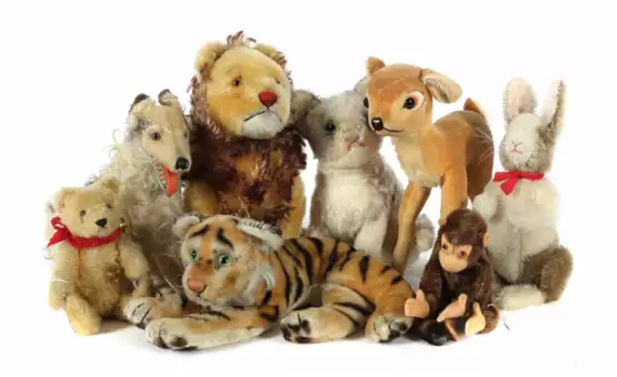 Lot 250 | 8 Tiere mit kl. Teddy Steiff, ca. 1950/60er Jahre, 1 x Bambi H: 21 cm;…