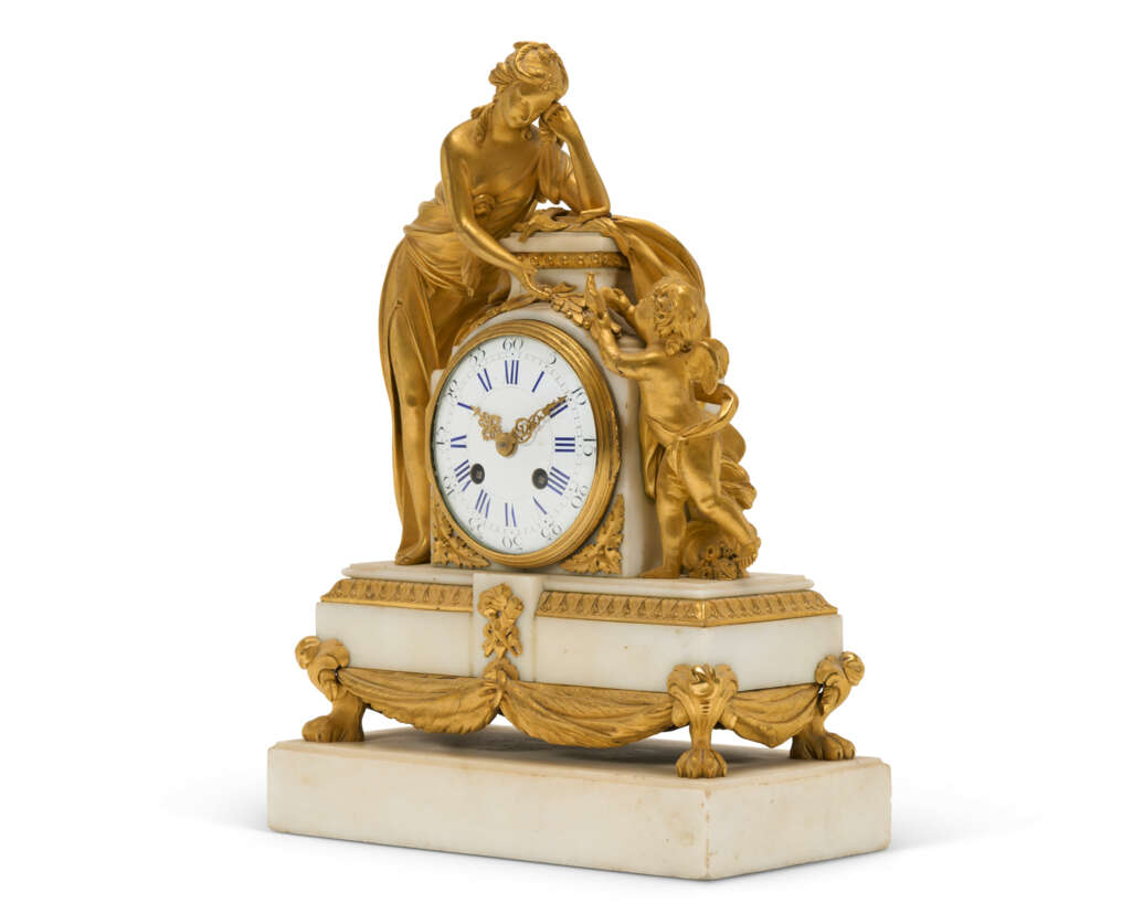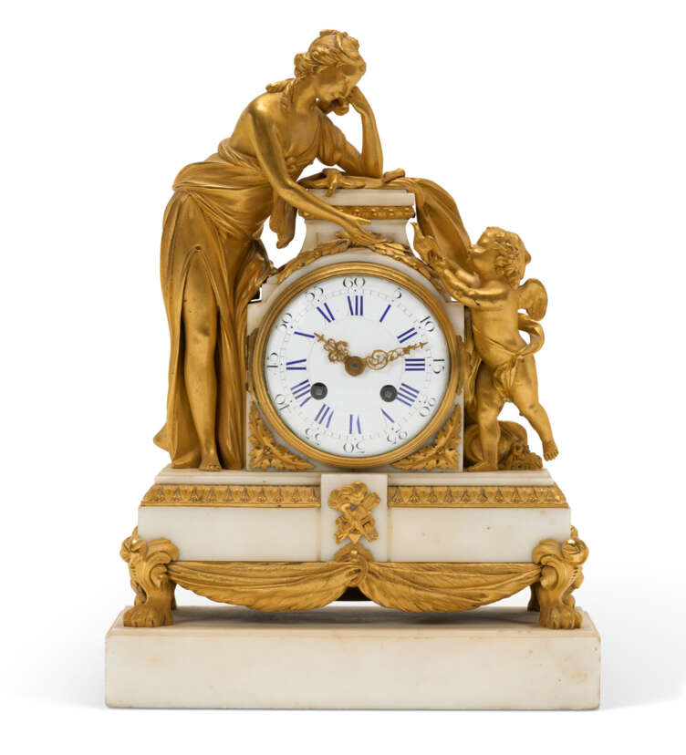 Lot 296 | A LOUIS XVI ORMOLU AND WHITE MARBLE MANTEL CLOCK