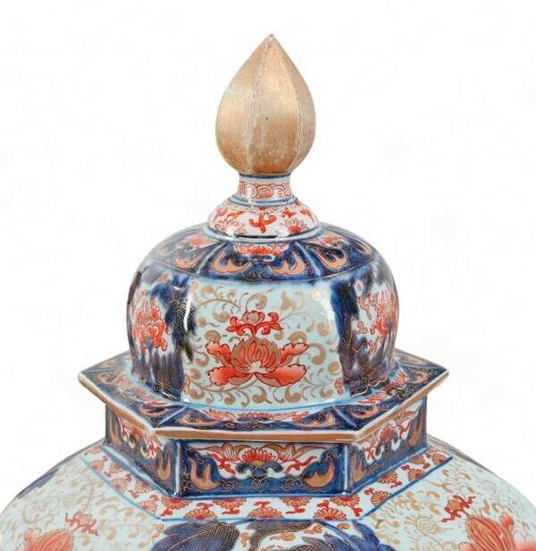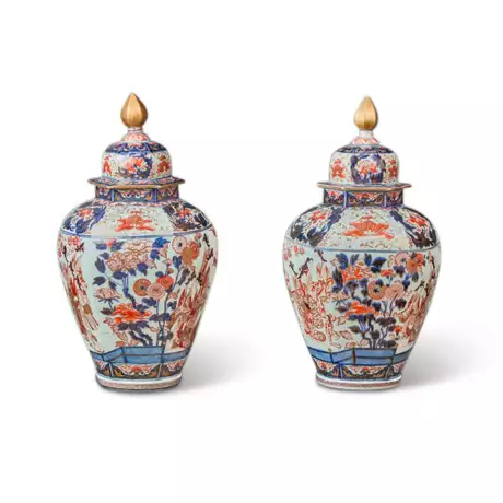 Lot 6 | A PAIR OF JAPANESE PORCELAIN IMARI 'TEMPLE' JARS AND COVERS