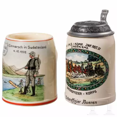 Lot 11555 | A reservist's mug I.R. 37 and a commemorative mug "Einmarsch in Sudetenland"
