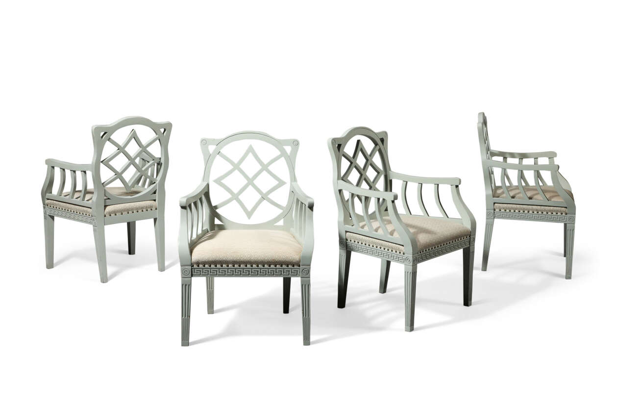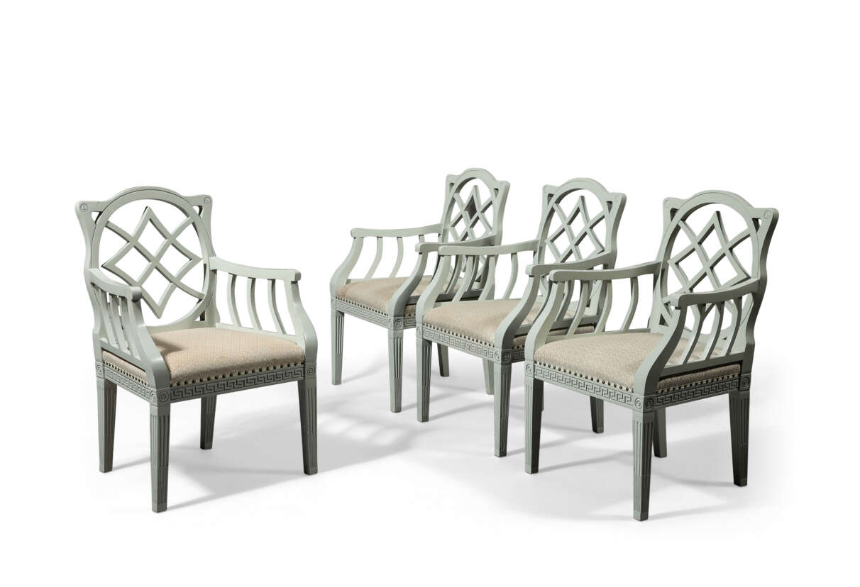 Lot 3 | A SET OF FOUR GEORGIAN STYLE WHITE-PAINTED ARMCHAIRS
