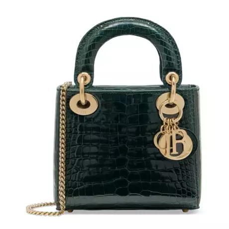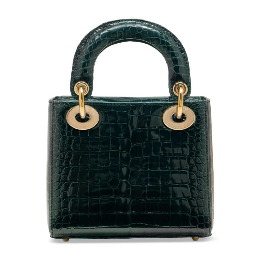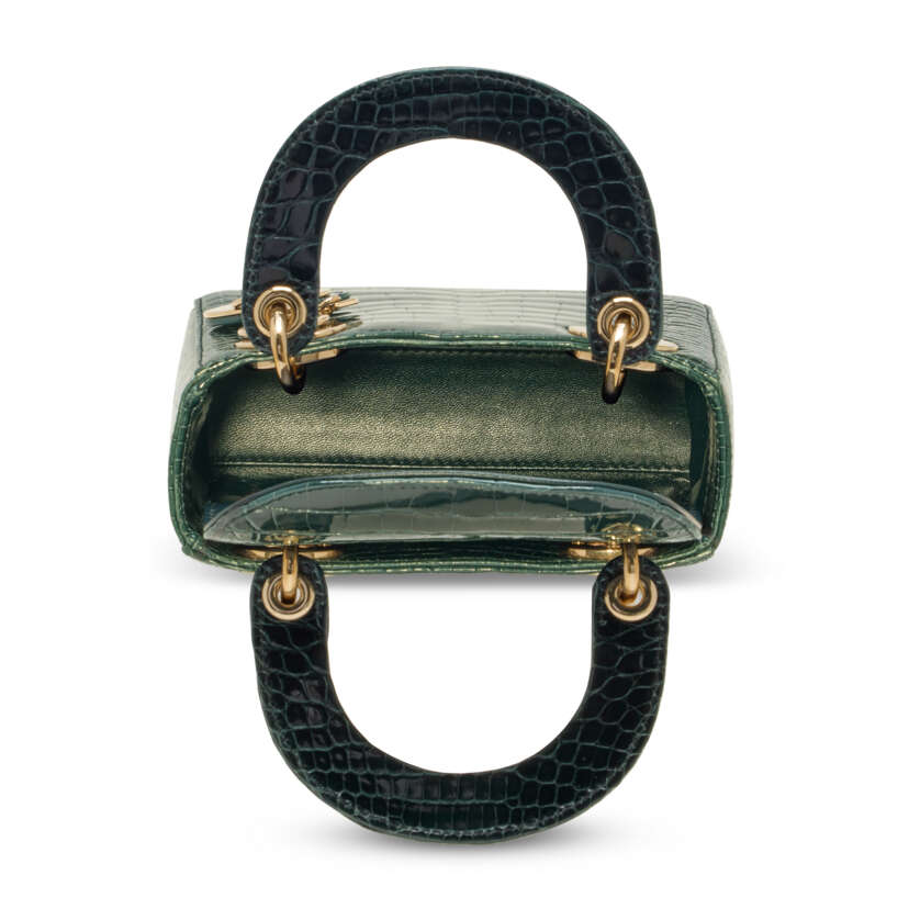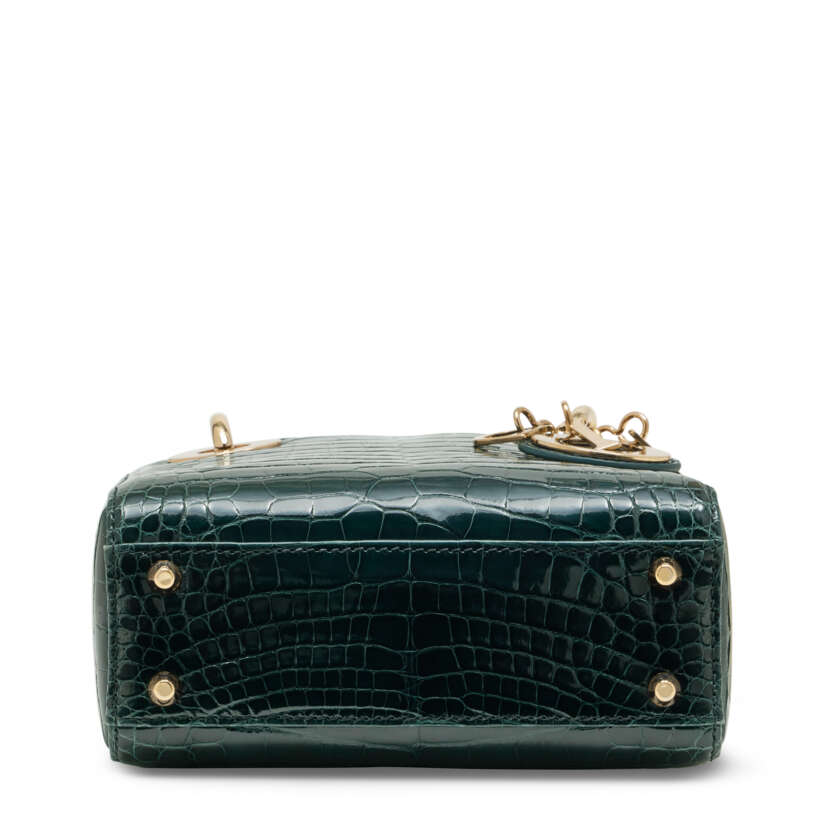Lot 191 | A SHINY FOREST GREEN ALLIGATOR MINI LADY DIOR WITH LIGHT GOLD HARDWARE