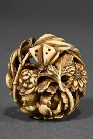 Lot 1282 | Manju netsuke carved on all sides from deer antler…