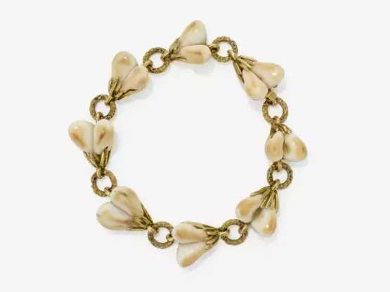 Yellow gold 750/- and 585/-, hallmarked. Jeweller's mark "th". 8 pair of deer eye teeth. The bracelet is in good condition, showing minor signs of wear and tear consistent to age. Length approx. 20 cm. Ca. 41.9 g.
