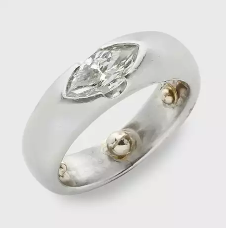 Platin, gest. 950. Zentral besetzt mit Diamant-Navette von ca. 1,00 ct. (I-J/si). Gew. ca. 14,31 g.