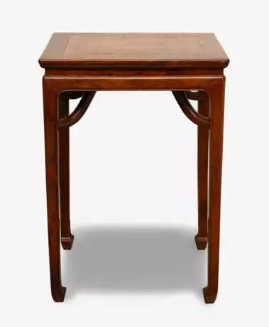 China, 19.Jh. Huanghuali. Rechteckige Tischplatte auf vier hohen Beinen. Geschwungene Zierstreben unter Tischplatte. 56x44,5x81,5 cm.