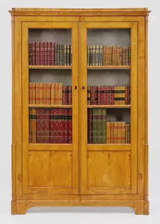 A German ashwood veneered Biedermeier bookcase. Later additions.