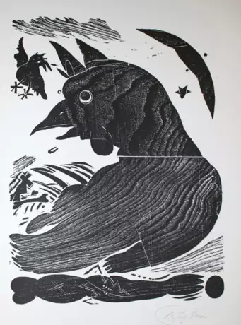 Eines v. 12 Künstlerex. (GA 130). Alle Holzschn. u. Druckverm. v. Künstler sign. Gedruckt von Herbert Gutsch in der Druckwerkstatt des Berufsverbandes Bildender Künstler Berlins, auf 270 g Rives-Bütten; Schrift: Blockschmal der Berthold AG, 1922 von H. Hoffmann entworfen; Buchbinder: Christian Klünder, Berlin. - Guter Zustand.