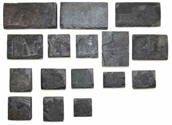 16 Holzstöcke aus dem Verlag Braun & Schneider, München 2. Hälfte 19. Jh. Versch. Formate.