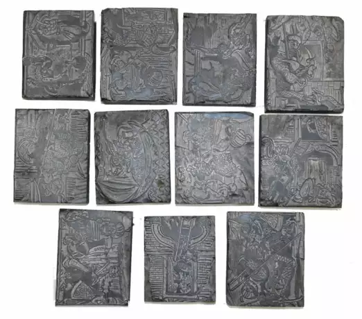 Vorh.: ╔Die Entführung aus dem Serail╗ 11 von 12 Holzstöcken (ohne # 1). ╔Diogenes u. die bösen Buben von Korinth╗ 13 von 14 Teilen (ohne # 5). Münchener Bilderbogen 350 u. 439. Leichte Gebrauchs- u. Alterssp.