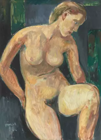Frauenakt. 1953. Öl auf Hartfaserplatte. Unten links signiert und datiert. 81x60 cm. Gerahmt.