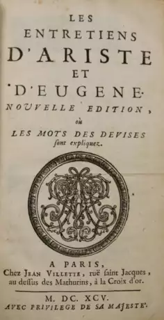 Vgl. Meyer, Flugschriften der Epoche Ludwigs XIV, 486 b (dt. Ausg. 1678). Ruft England dazu auf, sich mit den Gegnern Frankreichs zu verbünden. - Gebräunt, anfangs kl. Wurmspur. - ╔Dabei: Histoire╗ de l'Academie royale des sciences, Jg. 1714. Amsterdam 1719. Mit gest. Front., Titelvign. u. 18 Kupfertaf. - ╔Echard,L.╗ Dictionnaire geographique-portatif... Paris (1769). Mit 2 gefalt. Kupferstichkarten. - ╔(Bouhours,D.)╗ Les entretiens d'Ariste et d'Eugene. Nouvelle ed. Paris 1695. Mit Kupfertitel. - Zus. 4 Bde.