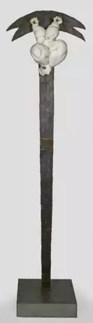 Large mixed media sculpture (marble cast, steel, stainless steel and wrought iron).