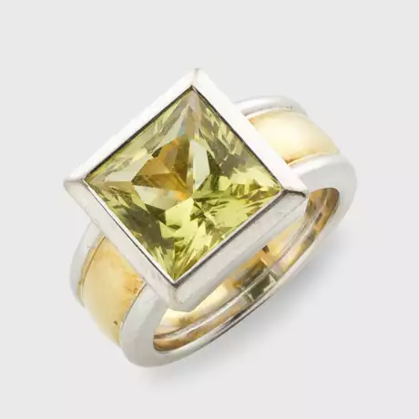 Gelb- und Weißgold, gest. 750. Zentral besetzt mit einem Lemon-Citrin im Princesscut. Gew. ca. 17,87 g.