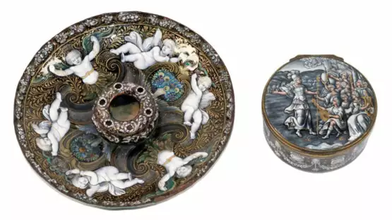 Lot 2470 | Deckeldose und Kerzenhalter.