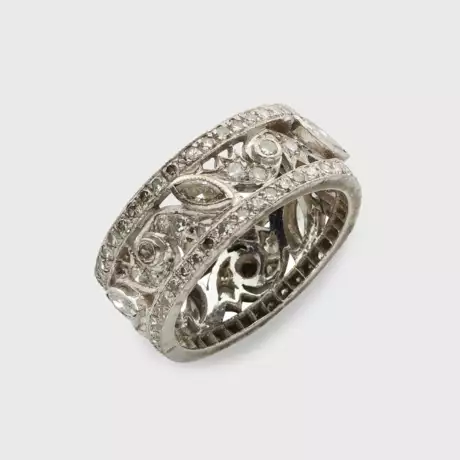 Platin. Schauseitig besetzt mit Diamant-Navetten und 8/8 Diamanten von zus. ca. 1,50 ct.; Gew. ca. 7,53 g.