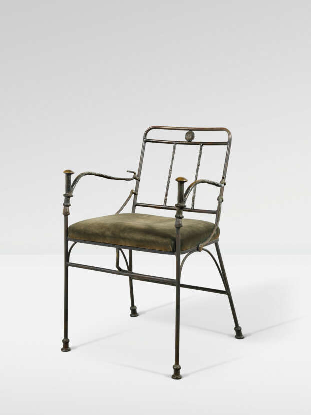 Bronze patiné et fer patiné ; coussin en velours / patinated bronze and patinated iron ; velvet cushion
