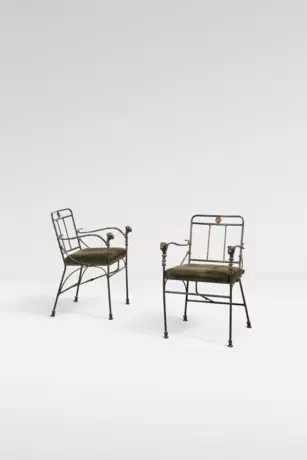 Paire de fauteuils 'Tête de lionne', première version, le modèle créé vers 1970