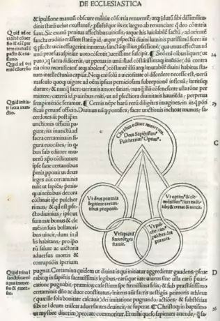 Isaac 12668. Adams D 522. Nicht bei Essling, Sander u. Mortimer. - 3. lat. Sammelausgabe des unter dem Namen des Dionysius Areopagita laufenden Korpus griech. Schriften u. Briefe vom Ende des 5. Jh. n. Chr. - "D. gewann auch im Abendland fast kanon. Einfluß. Sein Einfluß wirkt am stärksten im theolog.-spekulativen Denken der Scholastiker u. in der Mystik. Erst die Humanisten (Lorenzo Valla, Erasmus) zogen die Echtheit der Schriften wieder in Zweifel" (Kl. Pauly 11, 67). Sorgfältig gedruckte Postinkunabel, zur "b M" (Benedetto Montagna) monogr. Druckermarke Tacuinos mit Johannes dem Täufer vgl. Mortimer 246. - Anfang mit kl. Wurmspuren. Einige Unterstreichungen u. Marginalien von alter Hand. Hs. Besitzverm. u. gelöschter St.a.T.
