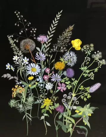 (1887 Farmos - Sopron 1951). Blumen. Gouache auf schwarzem Papier. Sign., nicht dat. (um 1910). 58 x 44,5 cm. - In Passepartout unter Glas (ungeöffnet). - Mit leichten Verschmutzungen.
