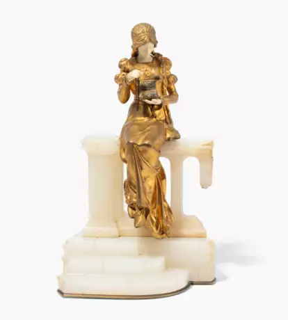 Frankreich, um 1900. Bronze, vergoldet, Elfenbein und Onyx-Marmor. Bezeichnet "Alonzo" sowie "D.Alo". H 30 cm.