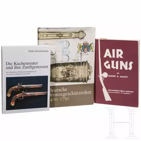 Götschmann, Dirk: Die Kuchenreuter und ihre Zunftgenossen. Das Oberpfälzer Büchsenmacherhandwerk von seinen Anfängen bis um 1850. Regenburg 1995. Gebunden, Schutzumschlag, 211 Seiten. Wolff, Eldon, G.: Air Guns. Milwaukee 1958. Ein umfassendes Werk zur Geschichte und Technik von Luftgewehren. Paperback, 198 Seiten. Müller, Heinrich: Deutsche Bronzegeschützrohre 1400 - 1750. Berlin 1968. Gebunden, Schutzumschlag, 255 Seiten.