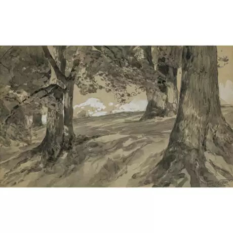 Monogrammed, inscribed with the place name Metten and dated 12.VIII lower right. Washed ink drawing, partly heightened with white, on vellum. 21.4 x 33.3 cm. Minor damage. Minor damage to frame (41.5 x 52.5 cm).