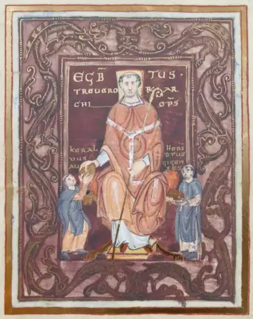 In einem aufwendig gestalteten Einband mit der Darstellung Egberts nach dem Mettlacher Kreuzreliquar auf der vorderen Metallplatte. Eines von 980 arab. num. Ex.