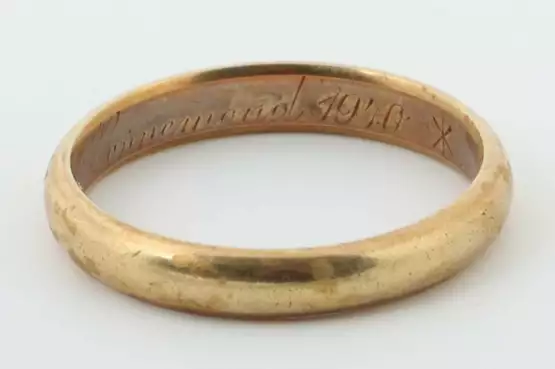 Ehering 20. Jhr. Gelbgold 585, punziert, ca. 4,4 g, RG 61. Tragespuren.
