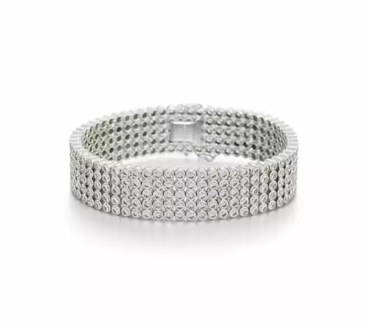 Description: Signed "HORNEMANN". Finely crafted carpet bracelet with five rows of diamond embellishments, designed to curve gracefully around the arm when worn.