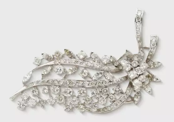 Weißgold, gest. 750. Schauseitig besetzt mit Brillanten von zus. ca. 3,30 ct. (H-J/vs-si). 2 Steine fehlen. Gew. ca. 13,47 g.