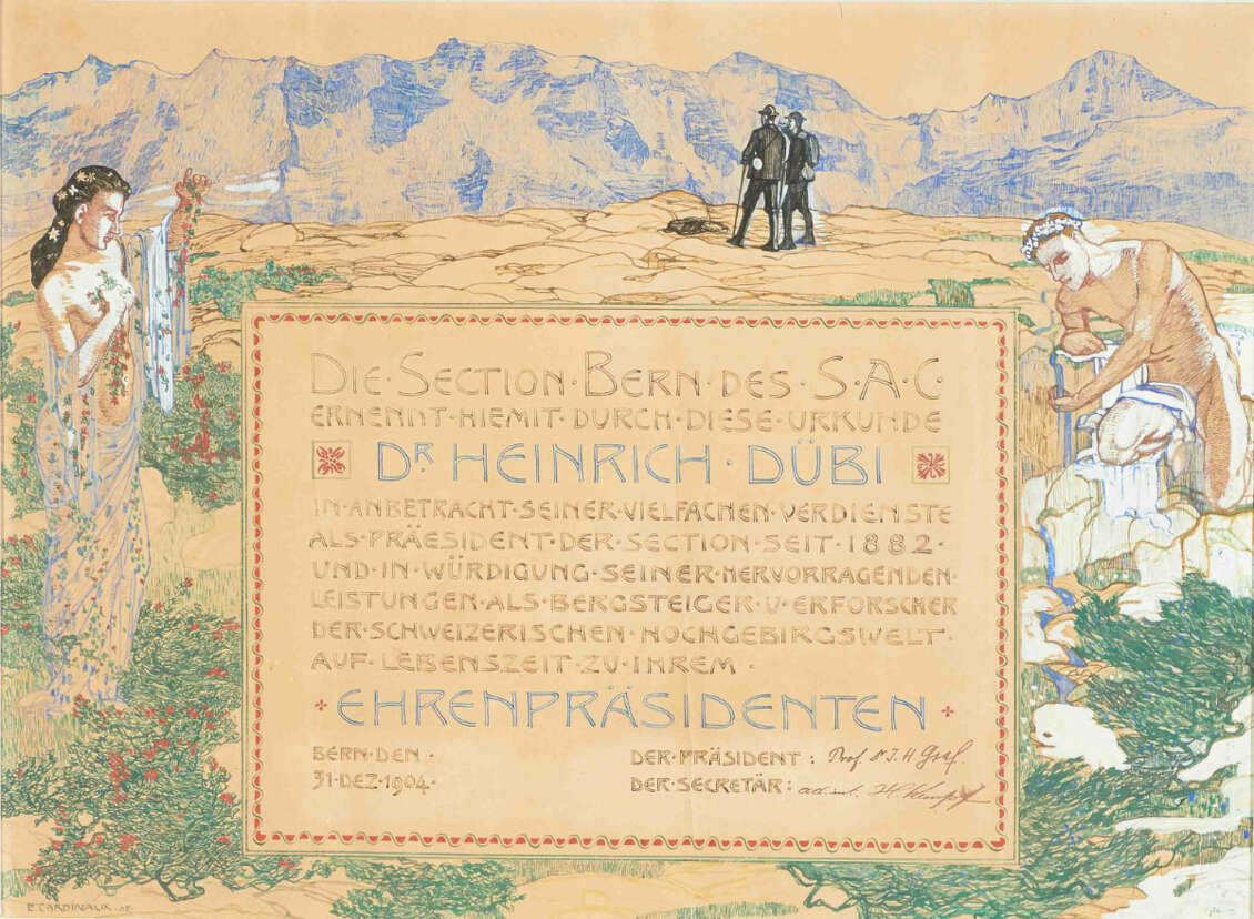 Les Dieux et la Montagne. 1905. Farbige Tusche auf Papier. Unten links in grüner Tusche signiert. Lichtmass 39x53 cm. Gerahmt.