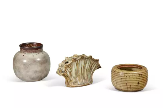 Le vase signé 'EDecœur', le pot couvert signé 'EDecœur' et portant le cachet au trèfle de l'artiste, la jardinière monogrammée 'ED' et portant le cachet au trèfle de l'artiste, l'ensemble au revers