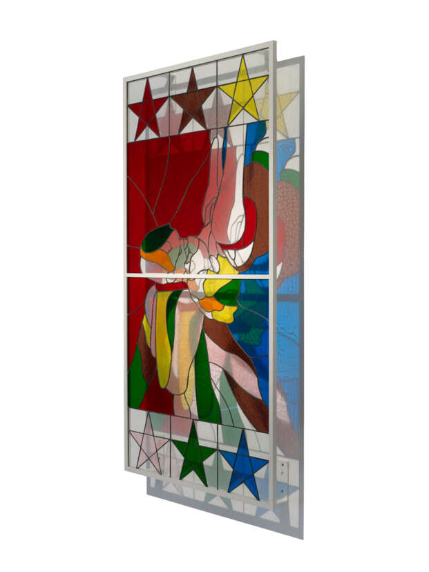 Aske and Johan upside down kissing in Power Play at Kunstforeningen GL STRAND