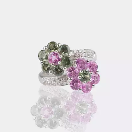 Lot 180 | Floraler Ring mit Farbedelsteinen.