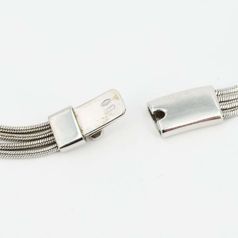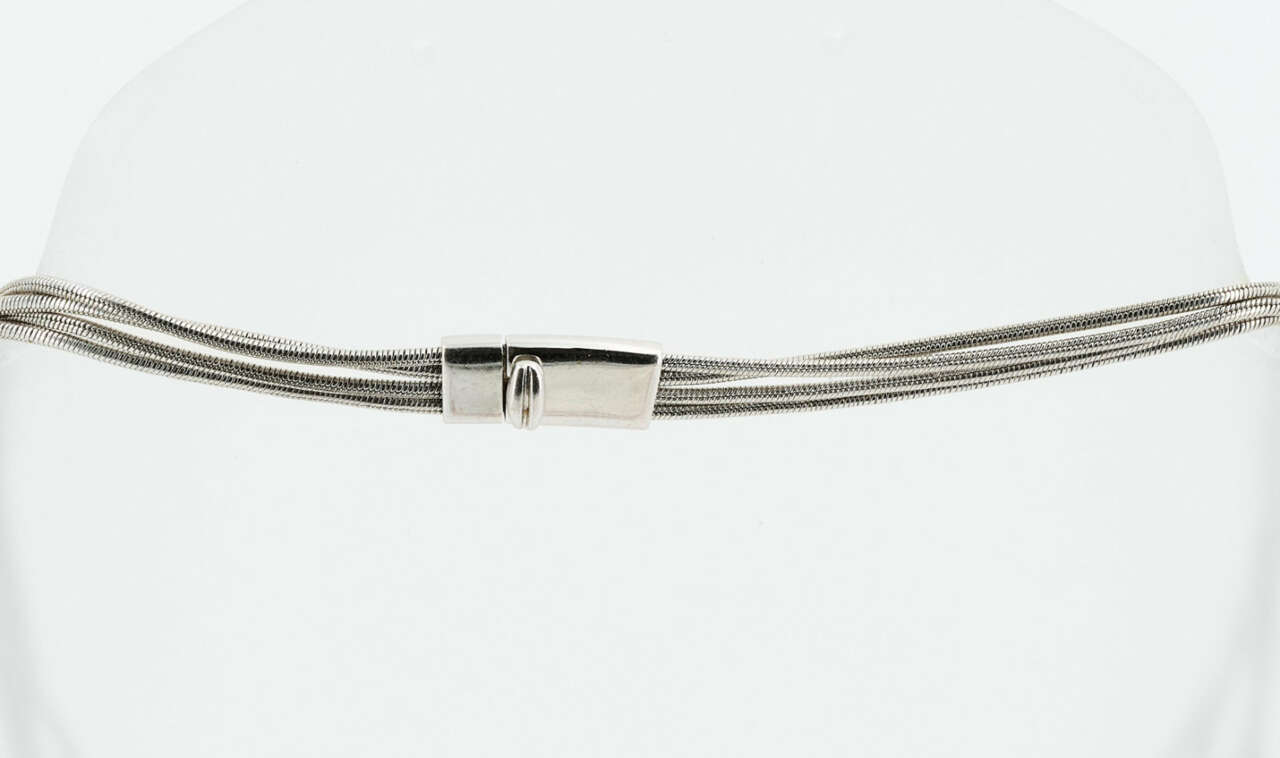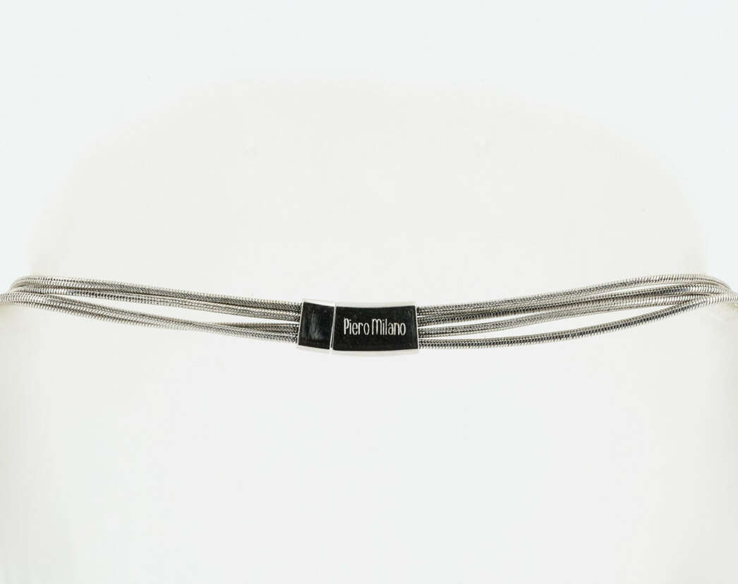 Description: Signed 'Piero Milano'. Slinky, multi-strand necklace made of delicate snake chains,